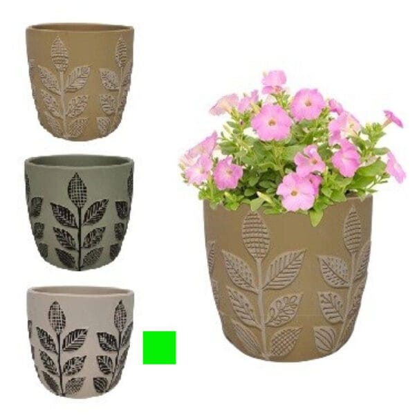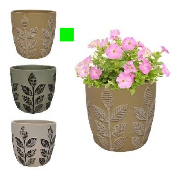 Maceta Terracota con Diseño de Hojas en Color Verde – Elegancia y Naturaleza (13.5 x 13.5 cm)