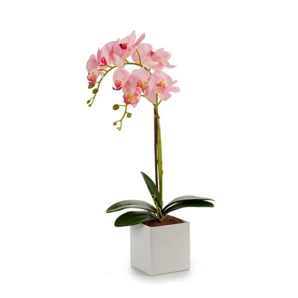 Dale un toque de elegancia y frescura a cualquier espacio con esta orquídea artificial con maceta cuadrada en color blanco. Su diseño realista y sofisticado la convierte en la opción perfecta para decorar el hogar, la oficina o cualquier ambiente sin preocuparte por el mantenimiento. Con una altura de 51 cm, esta orquídea es ideal para colocar sobre mesas, estanterías o recibidores, aportando un estilo natural y moderno.