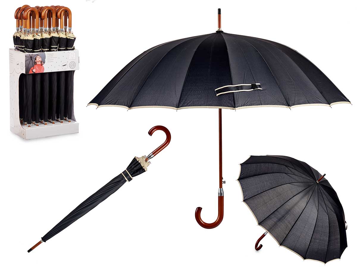 PARAGUAS NEGRO 16 VARILLAS BORDE