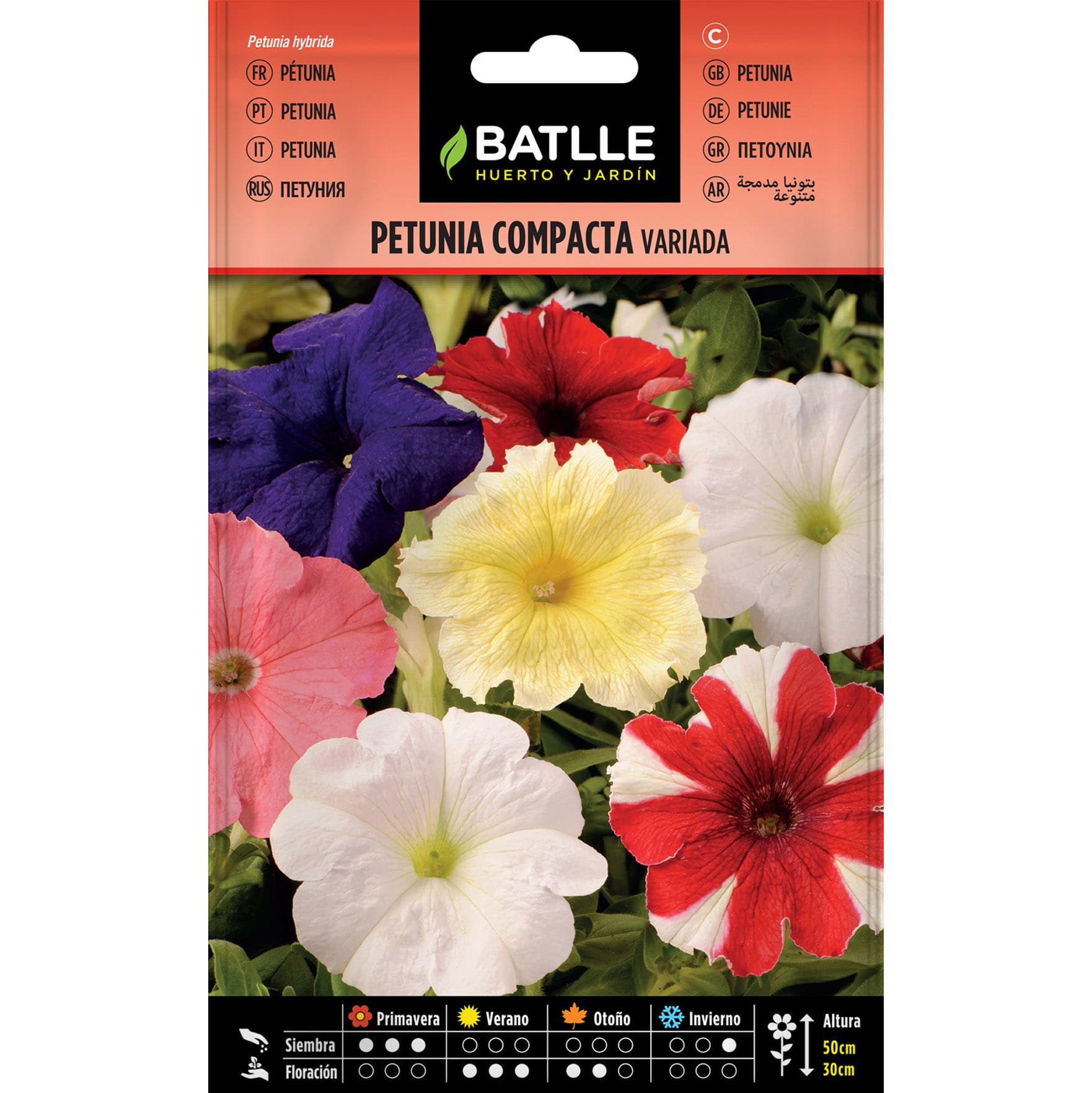 Presentación: Bolsa de 0,5 gramos de semillas de Petunia Compacta Variada.