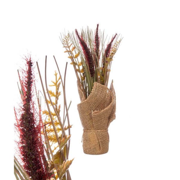 El ramillete en saco con ramas de color naranja envejecido es un adorno decorativo perfecto para dar calidez y estilo a cualquier ambiente. Su diseño combina un saco rústico como base con un arreglo de ramas en tonos naranjas envejecidos, creando un contraste armónico que aporta un aire natural y acogedor.