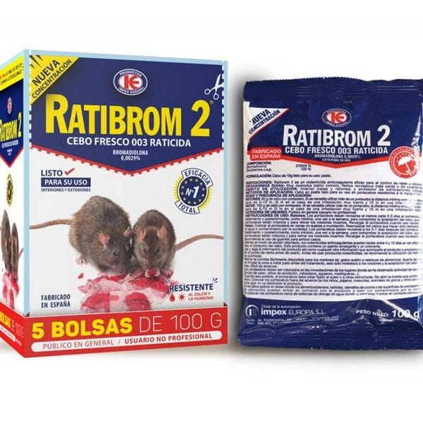 El RATIBROM-2 Cereal 150 gr es un cebo raticida especialmente formulado para el control eficiente de diferentes especies de roedores, como ratones de campo, ratas de alcantarilla, ratas negras, ratas domésticas y hasta topos. Presentado en prácticas bolsitas de 25 gramos microperforadas, listas para usar, que facilitan la liberación del producto y su rápida ingesta por parte de los roedores.