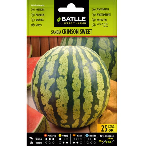 Sandía Sugar Baby – Semillas de Sandía de Ciclo Precoz, Fruta Dulce y de Tamaño Compacto | Pulpa Roja Intensa, Corteza Verde Oscura y Semillas Reducidas | Bolsas de 8g, 25g y Caja de 500g