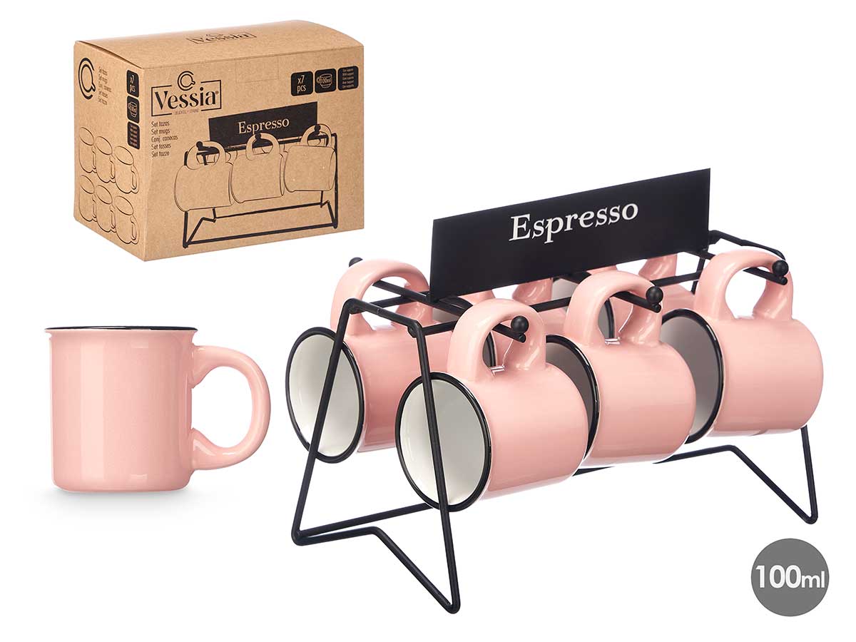 Set de 6 Tazas de Café con Soporte – 100 ml. Color Rosa.