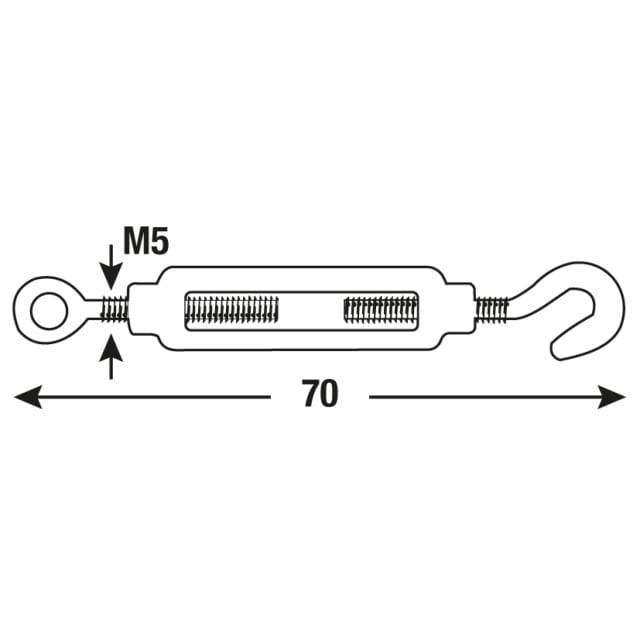 El tensor cincado M5 x 70 mm con ganchos y argollas es una solución práctica para tensar y asegurar cables, cuerdas o alambres en aplicaciones domésticas, agrícolas, náuticas e industriales. Fabricado en acero galvanizado de alta calidad, ofrece gran resistencia mecánica y protección contra la corrosión, asegurando un rendimiento duradero incluso en exteriores.