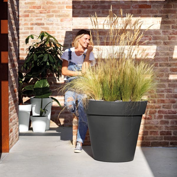 El Vaso Easy de 45 cm en color rosso oriente destaca por su forma precisa y equilibrada, combinada con un tono rojo intenso y sofisticado que aporta carácter a cualquier espacio. Su diseño redondo y contemporáneo convierte a esta maceta en una pieza decorativa de gran impacto visual, ideal para quienes desean dar protagonismo a sus plantas y crear ambientes modernos y elegantes.