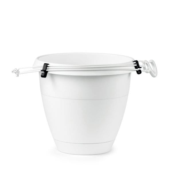 Fabricado con material plástico de alta calidad, este vaso colgante es resistente a golpes, rayos UV, calor y heladas, lo que garantiza una larga vida útil incluso en condiciones climáticas extremas. Su capacidad de 8 litros y sus medidas de Ø 30 x 24,5 cm lo hacen perfecto para plantas colgantes, flores o hierbas decorativas.
