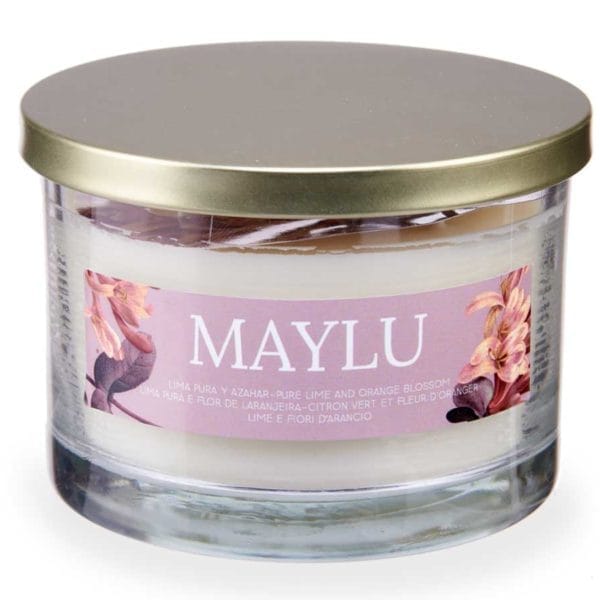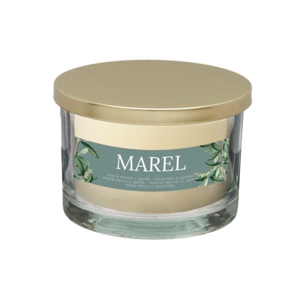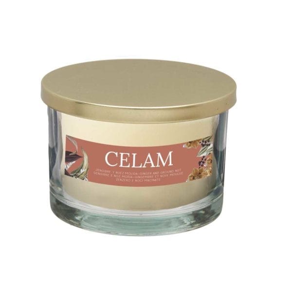 Vela vaso con tapa dorada olor nenúfar e higo dulce.