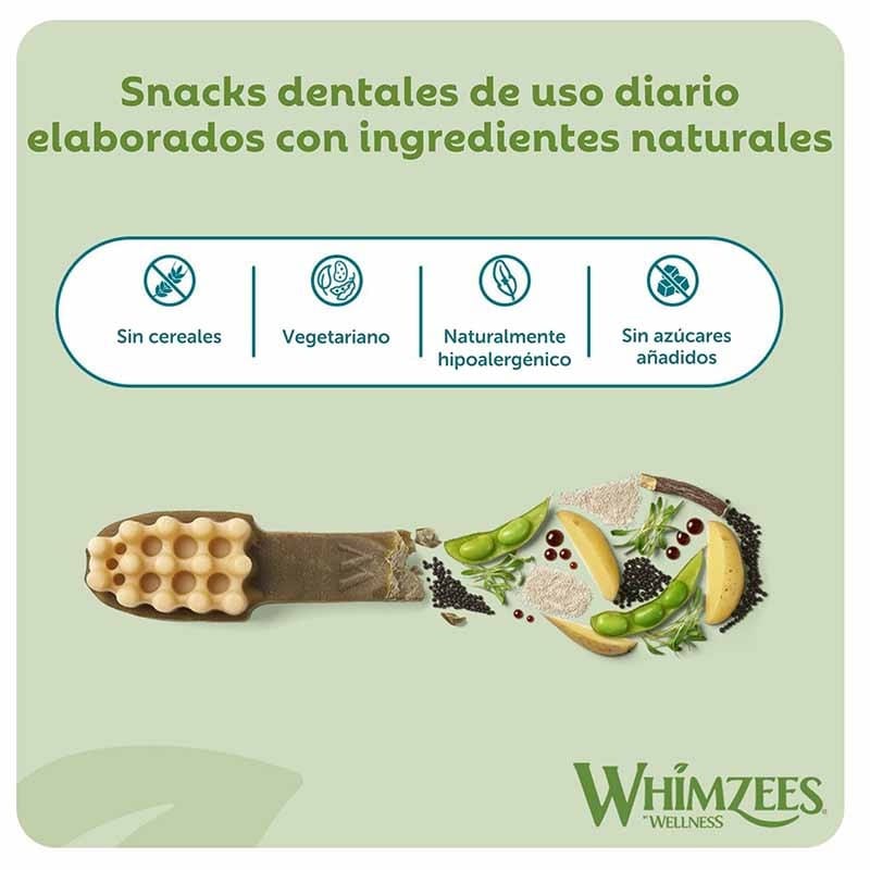 Whimzees Toothbrush S, snack dental natural para perros pequeños. Forma de cepillo que ayuda a reducir placa y sarro.